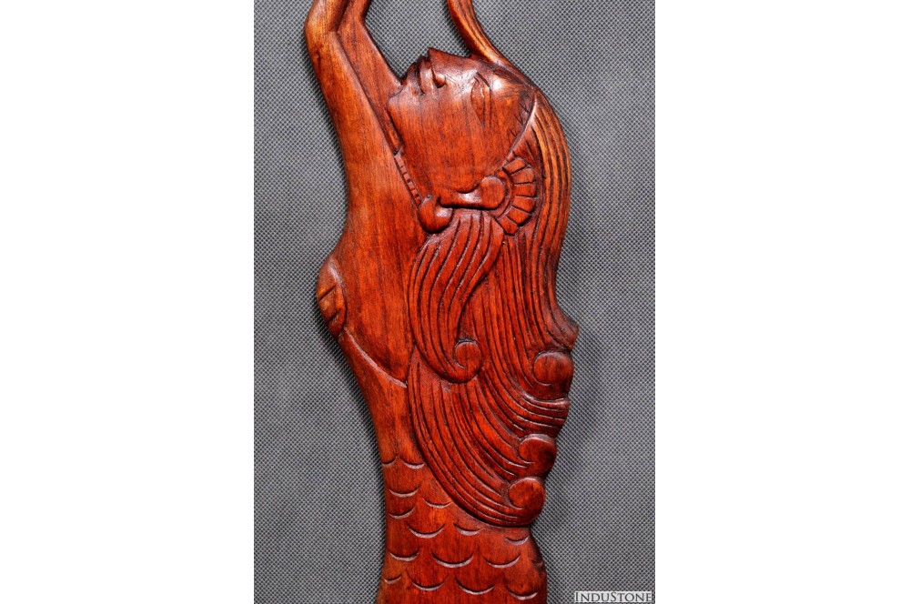 Панно дерев'яне, русалка. Кожен товар на нашому сайті зроблений вручну майстрами з Індонезії, чию майстерність цінують в цілому світі. В інтернет магазині mStones немає двох однакових товарів, оскільки кожен виріб є унікальний. Аксесуари, в поєднанні з іншими елементами інтер'єру з природніх матеріалів (наприклад, кам'яною раковиною чи мозаїкою) зроблять дизайн Вашої ванної, спальні, вітальної чи кухні гармонійним та надзвичайно затишним. На нашому сайті Ви можете знайти найрізноманітніші аксесуари: екзотичні лампи (як кімнатні, так і для саду чи подвір'я), приладдя для ванної (мильниці, дозатори для рідкого мила, посудини для щіток), підсвічники з каменю, підноси, дерев'яний і кам'яний посуд, статуетки, дерев'яні рами, предмети меблів тощо. Кожне замовлення постачається в спеціальній захисній упаковці, що гарантує його цілісність.